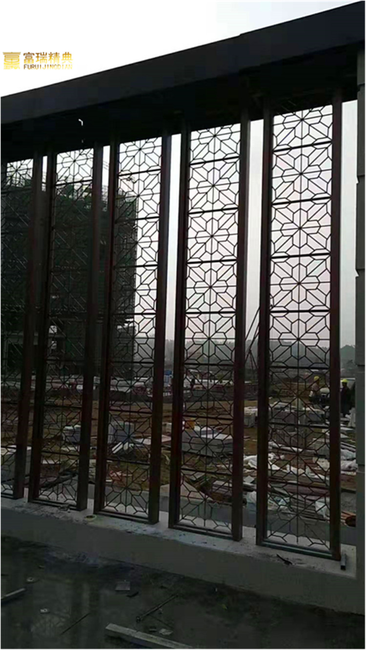 材质:铜牌匾、铜背景墙、铜屏风、铜廊架格栅