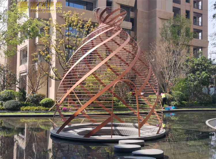 材质:铜装饰、不锈钢雕塑小品、不锈钢廊架格栅