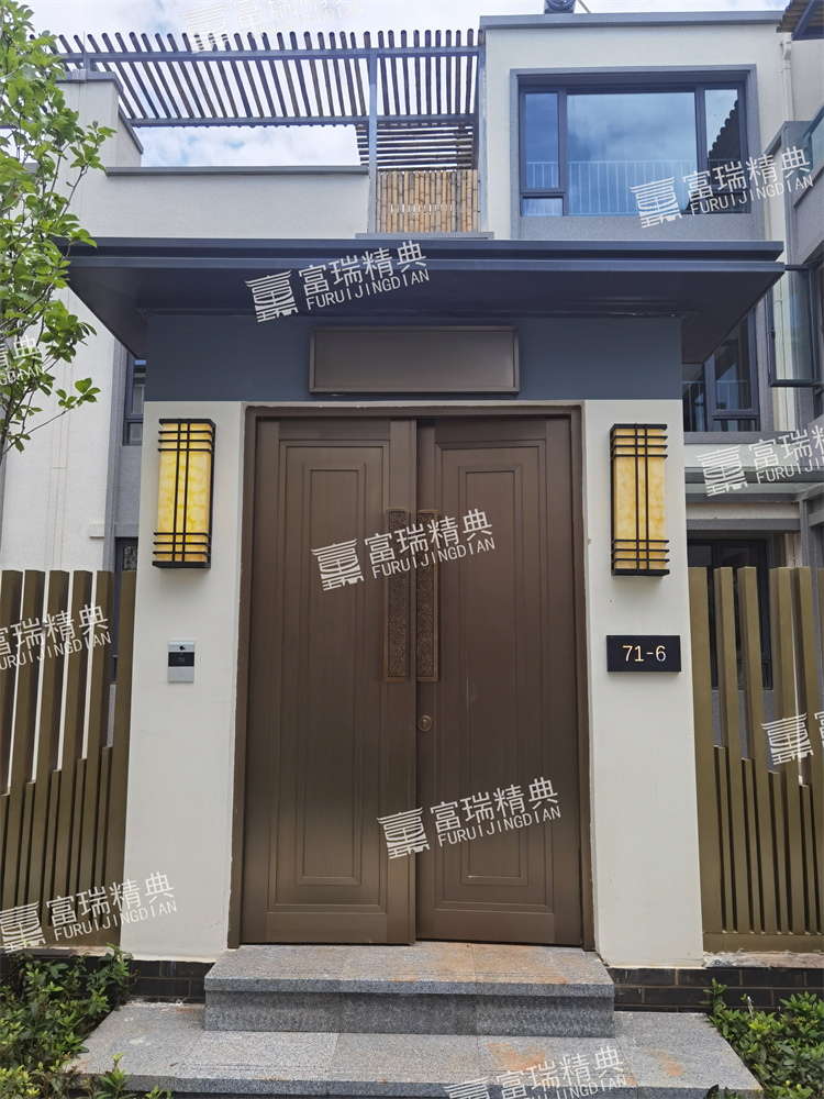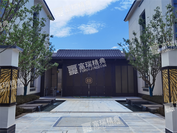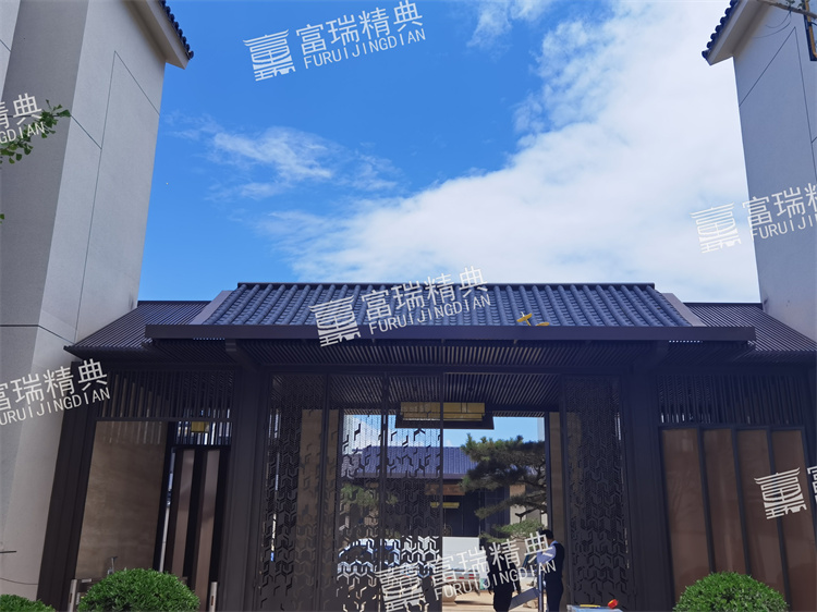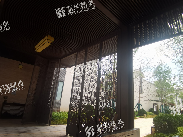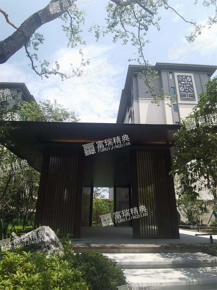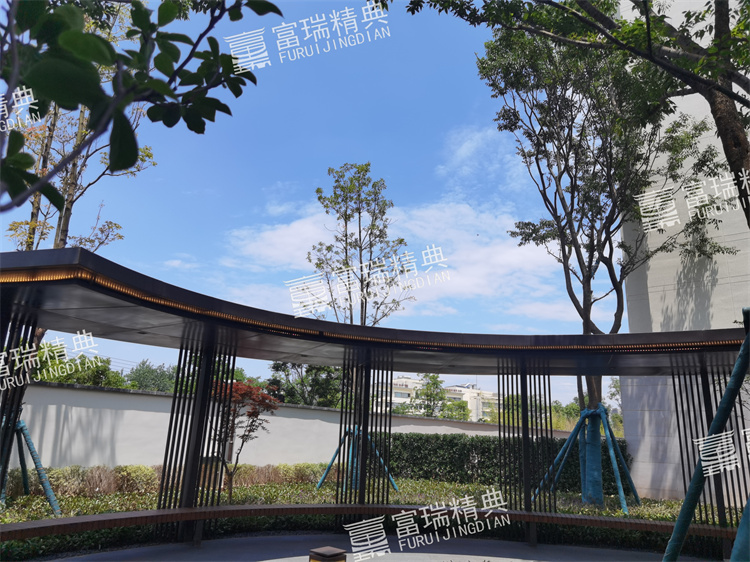 材质:不锈钢廊架、不锈钢栏杆、新中式门头