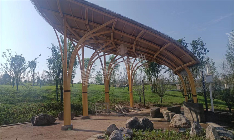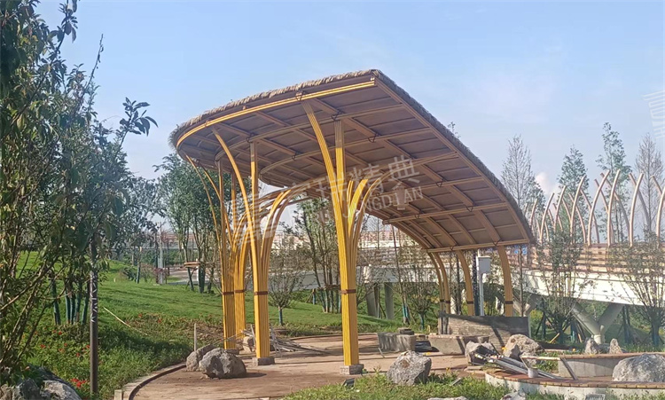 项目简介:四川宜宾淯江河钢结构廊架景观亭