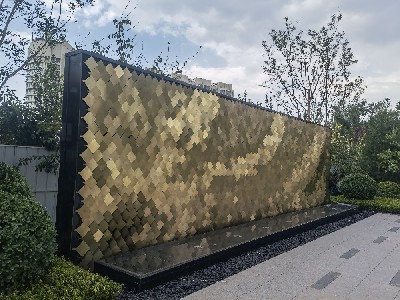 项目地址:山东材质:不锈钢景墙、铜灯、铜门、铜树池项目简介:山东青岛中杰时代公馆金属装饰业务范围:廊架格栅、景观凉亭、精神堡垒导视系统、亮化工程、金属装饰、异形构筑物等厂家,设计制作安装一体