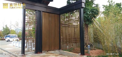 材质:不锈钢廊架、铜屏风、古建工程