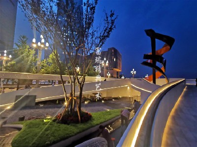材质:玻璃砖景墙、不锈钢景观小品