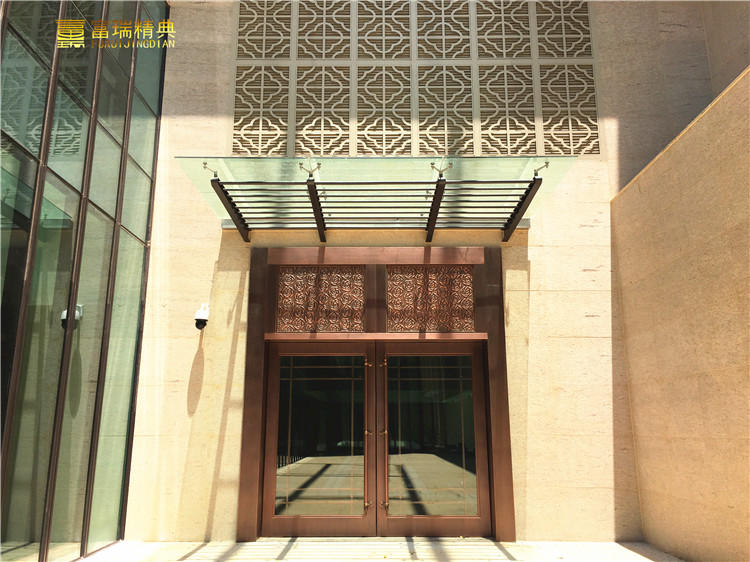 一、使用铜门时,不要在门扇上悬挂过重的物品或避.免尖锐的物品刻碰、划伤,开启或关闭门扇时,不要经常用力过猛或开启角度过大,以免损坏铜门。