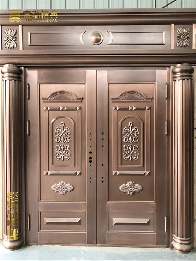 铜门的定义就是指真铜门。只是后来随着各种技术的广泛应用,出现了类铜门,如覆铜门、纳米铜门、仿真铜门、铜铝门、仿铜门等。那仿铜门和铜门的区别是什么呢?仿铜门不是铜门,但却是属于铜门一个系列的产品,它是铜门的一种仿造出来的效果。一般是以在表面上做出与铜门相似的效果而得名。仿铜门是由电解板制成,在表面喷涂